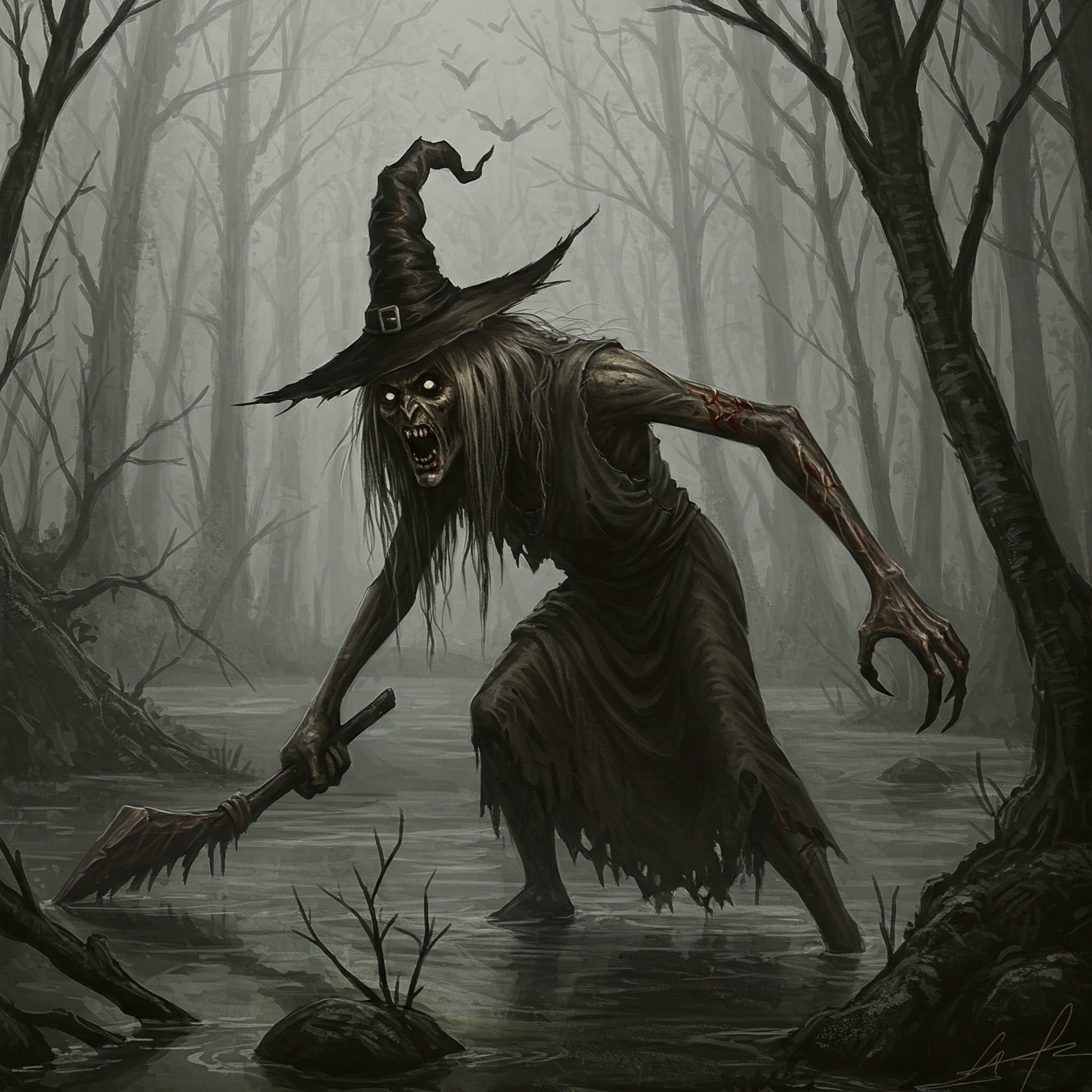 Abi takes a shot at the hag that’s staring down Azalea and scores a nat 20. The hag takes a nasty wound but still presses on and closes on Pesu Lappu, who barely dodges her blow. Old Lulu takes a swing and hardly wounds the creature. Blue stands there holding his torch, not wanting to be in the fight.