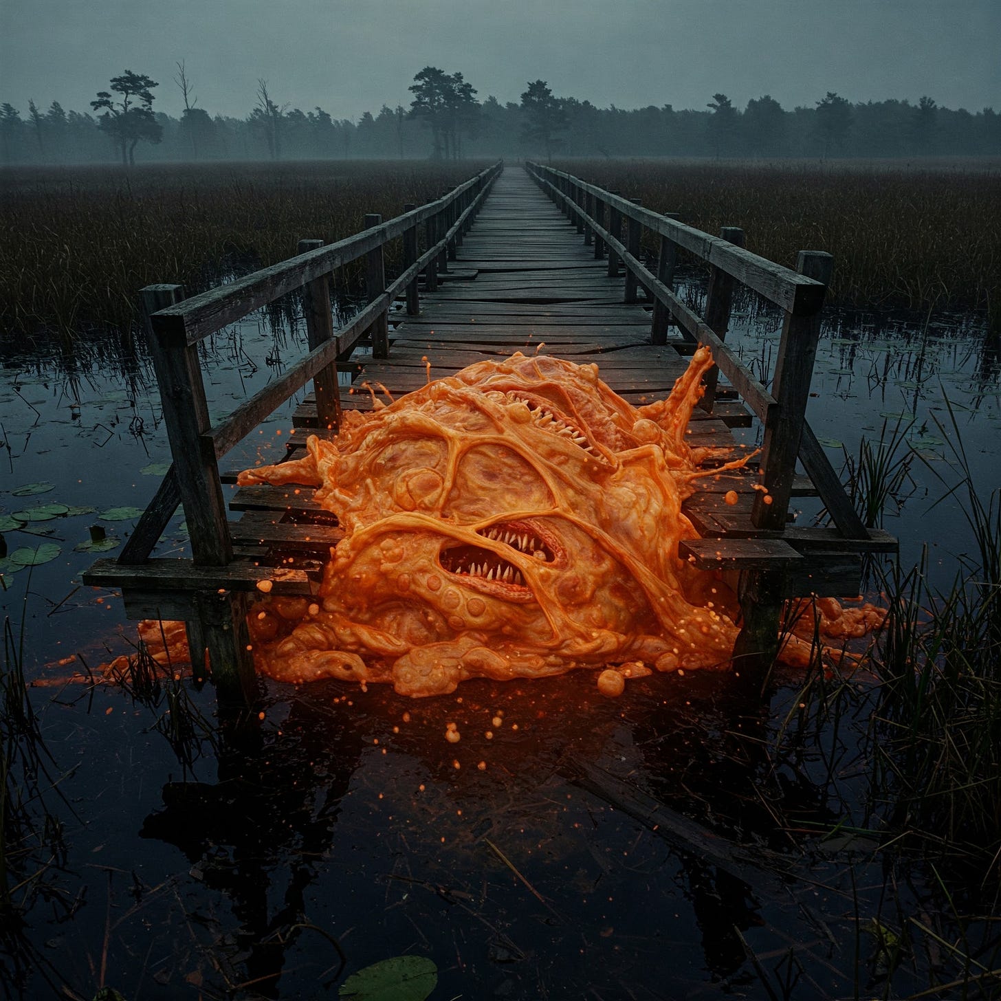The blob advances. Azalea shanks the trog prisoner uses his twitching body as a decoy for the blob and everyone swims or trudges off the boardwalk. We get around as the blob devours the trog and ignores us as we move on.